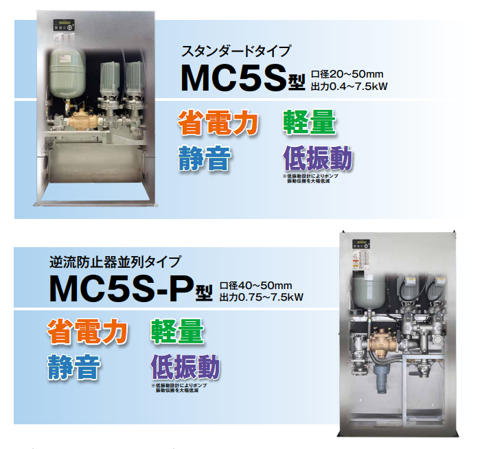 可使用推入壓力400kPa(150W以下可使用200kPa)輸出功率750W以上(LP-。e系列)搭載頂流電機(高效電機IE3)