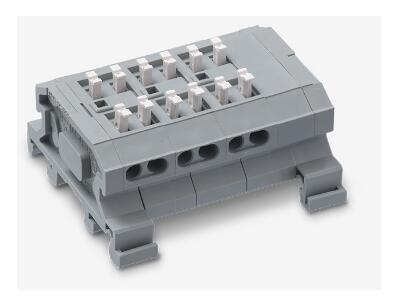• 無螺絲接線端子, 用于繼電器, 1 極, 4 孔, 交叉, 分支, 絞合, 單線, 尼龍, DIN導軌安裝, UL CSA TUV 94V-0